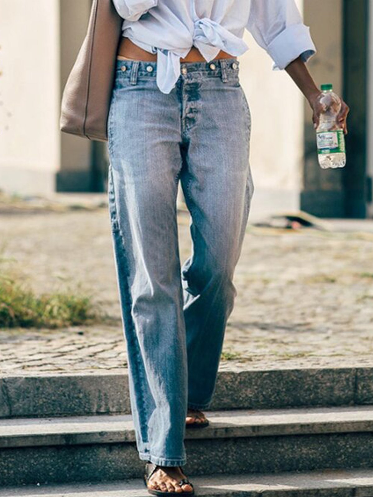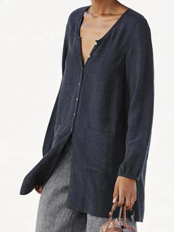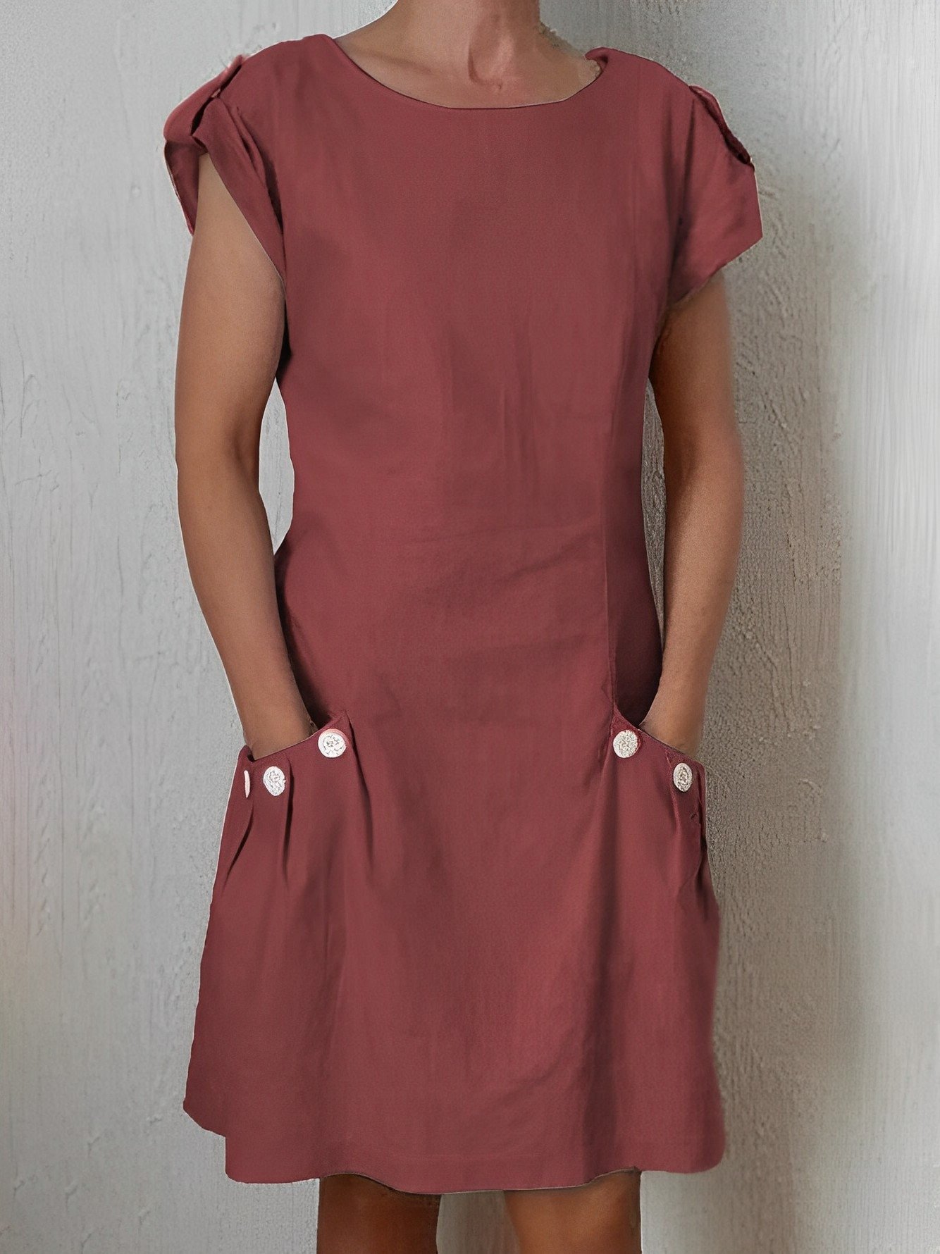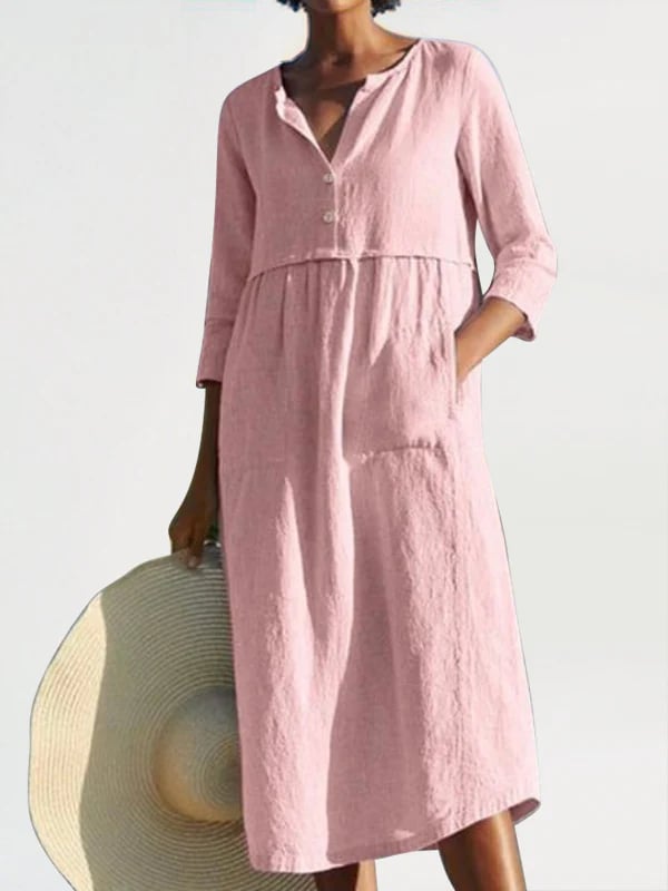 Summer Pockets Buttoned-decor Zipper Back Shift Linen Dresses