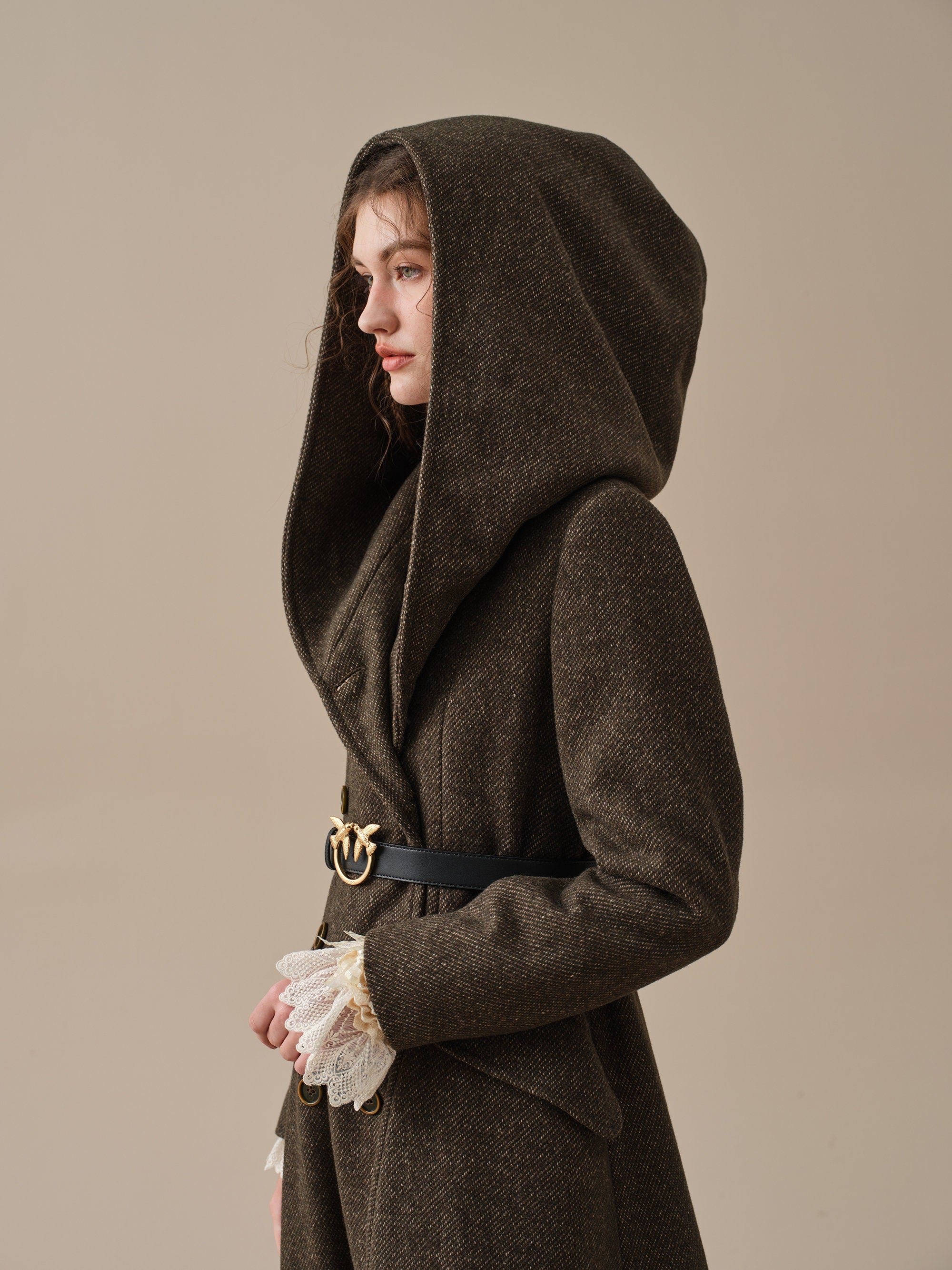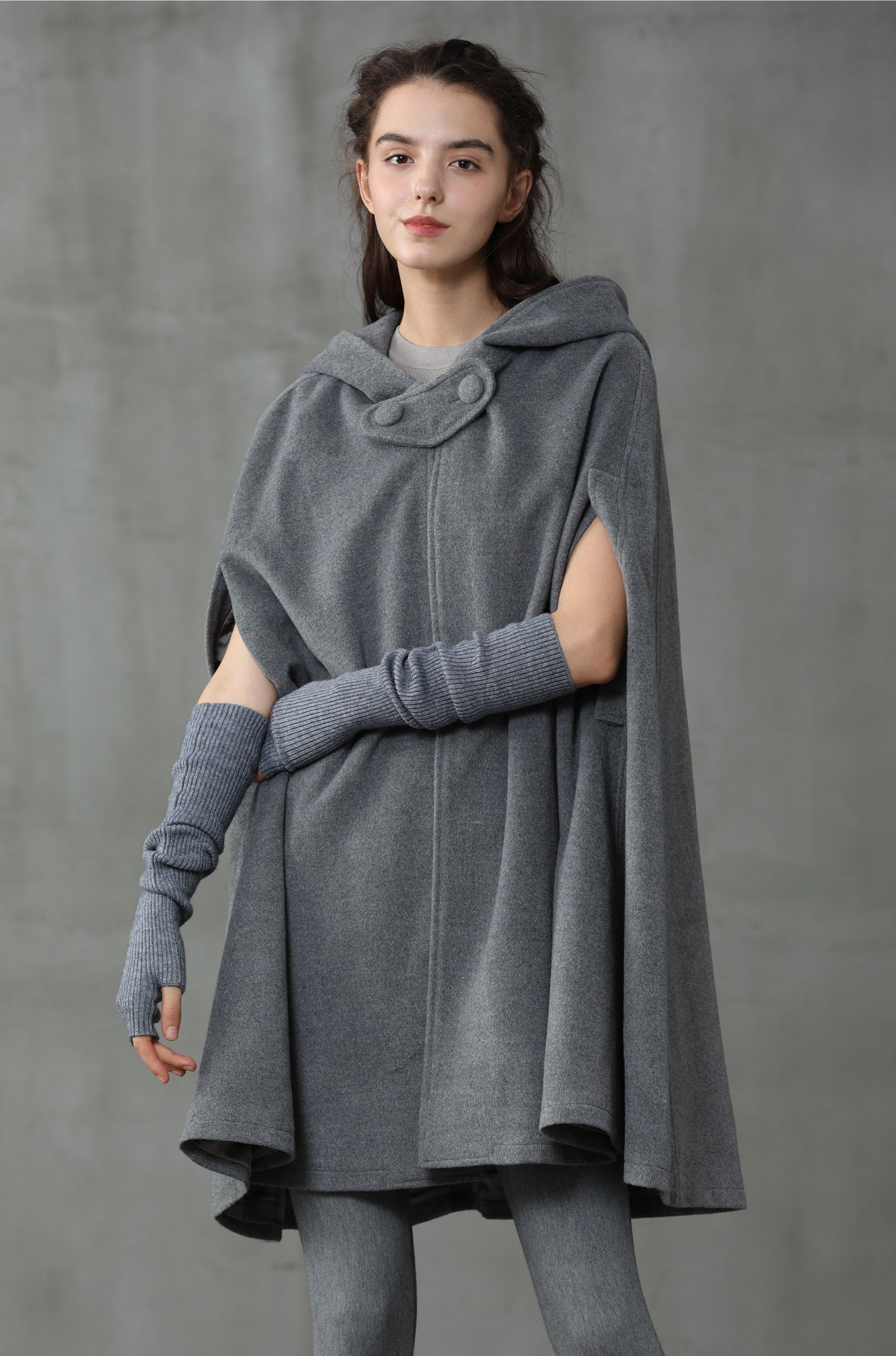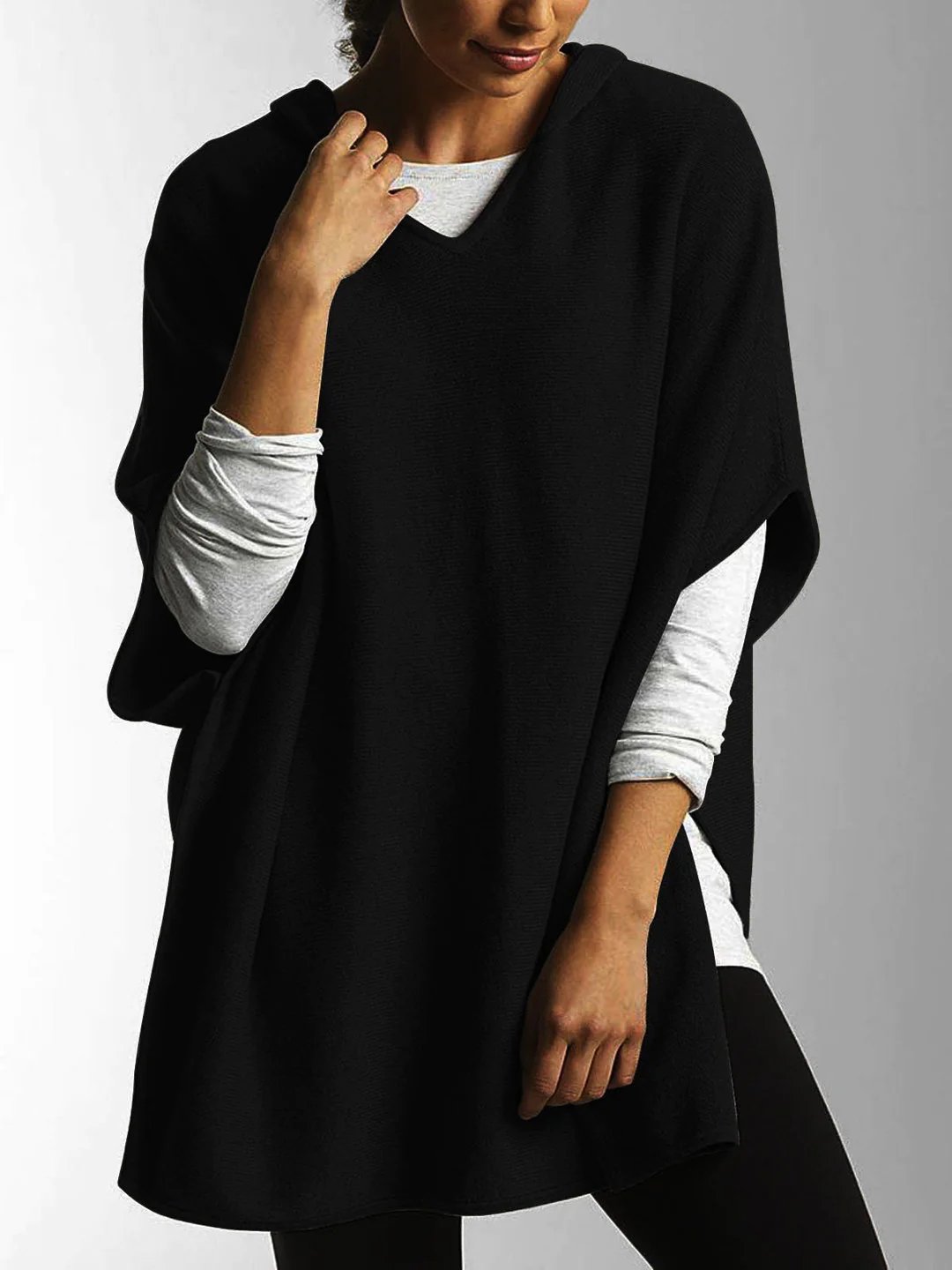 V Tie Hood Half Sleeve Side Slit Cropped Sweater