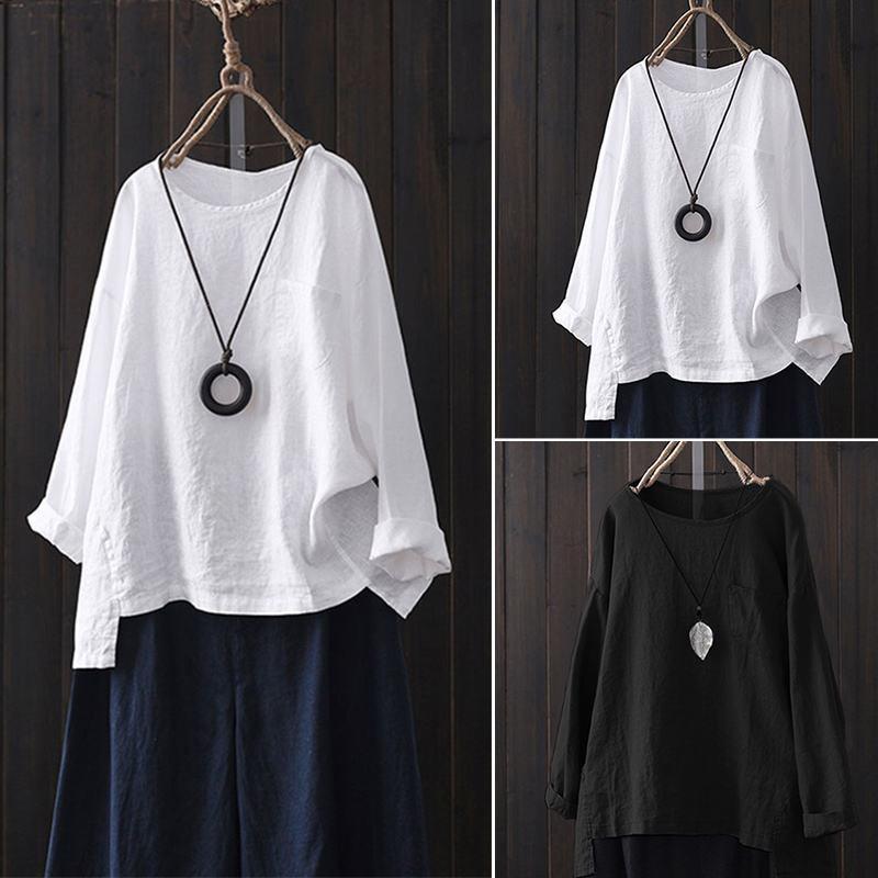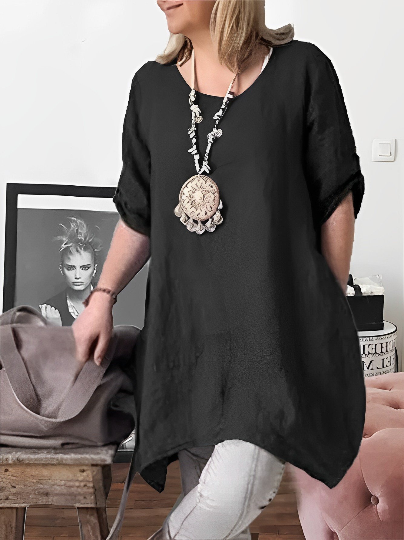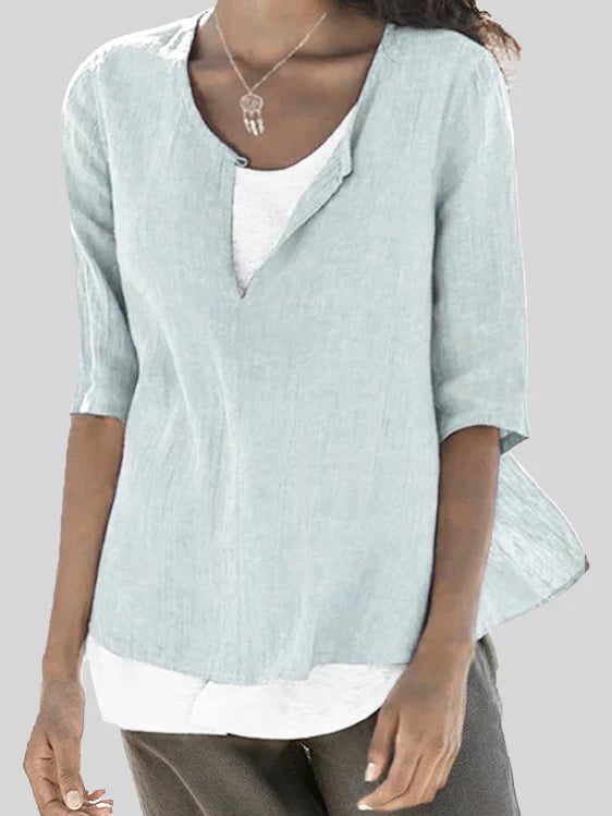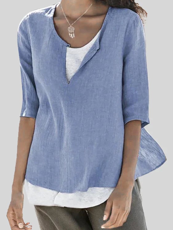 Solid Crew Neck Casual Women 3/4 Sleeve Blouse