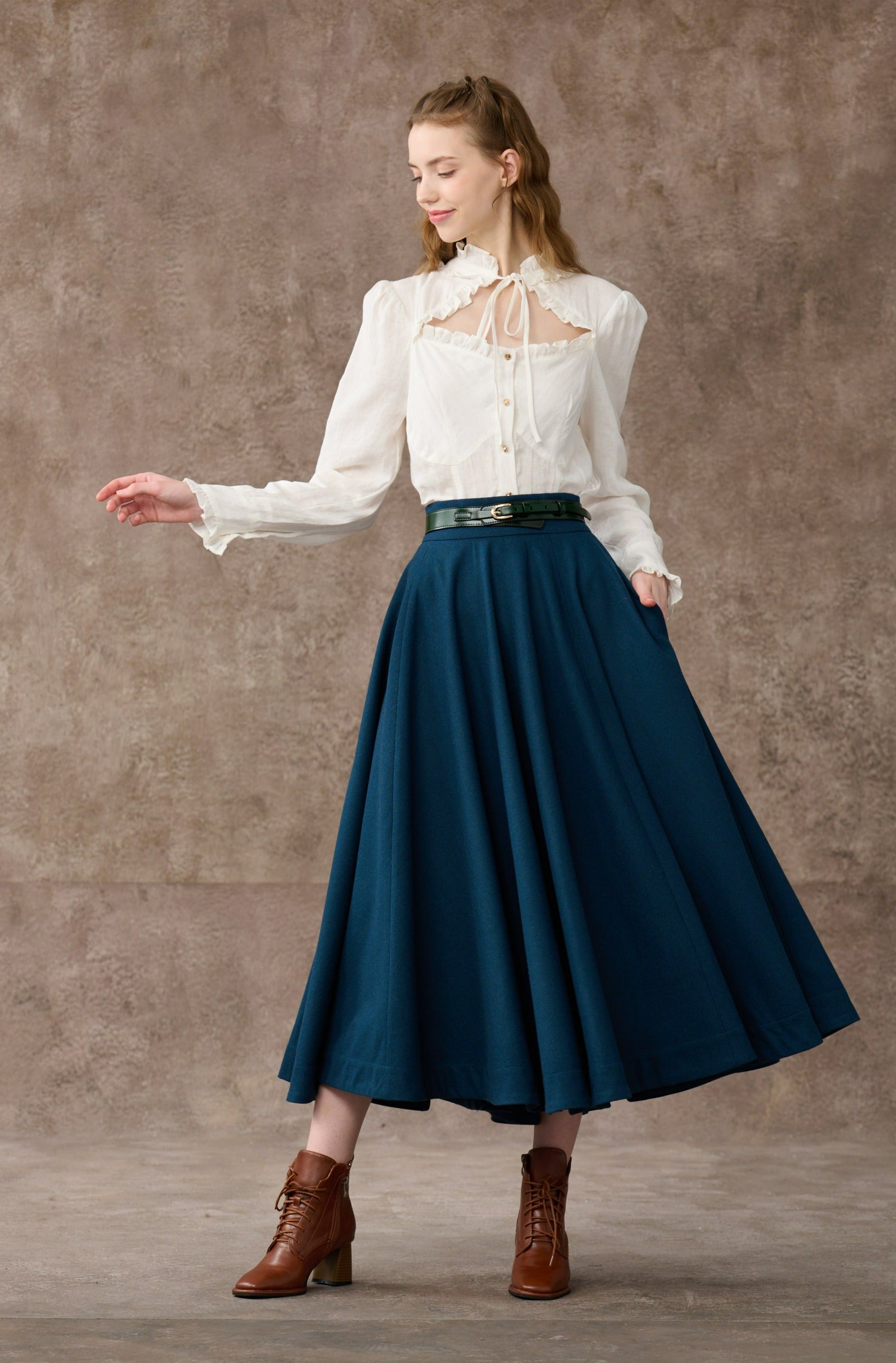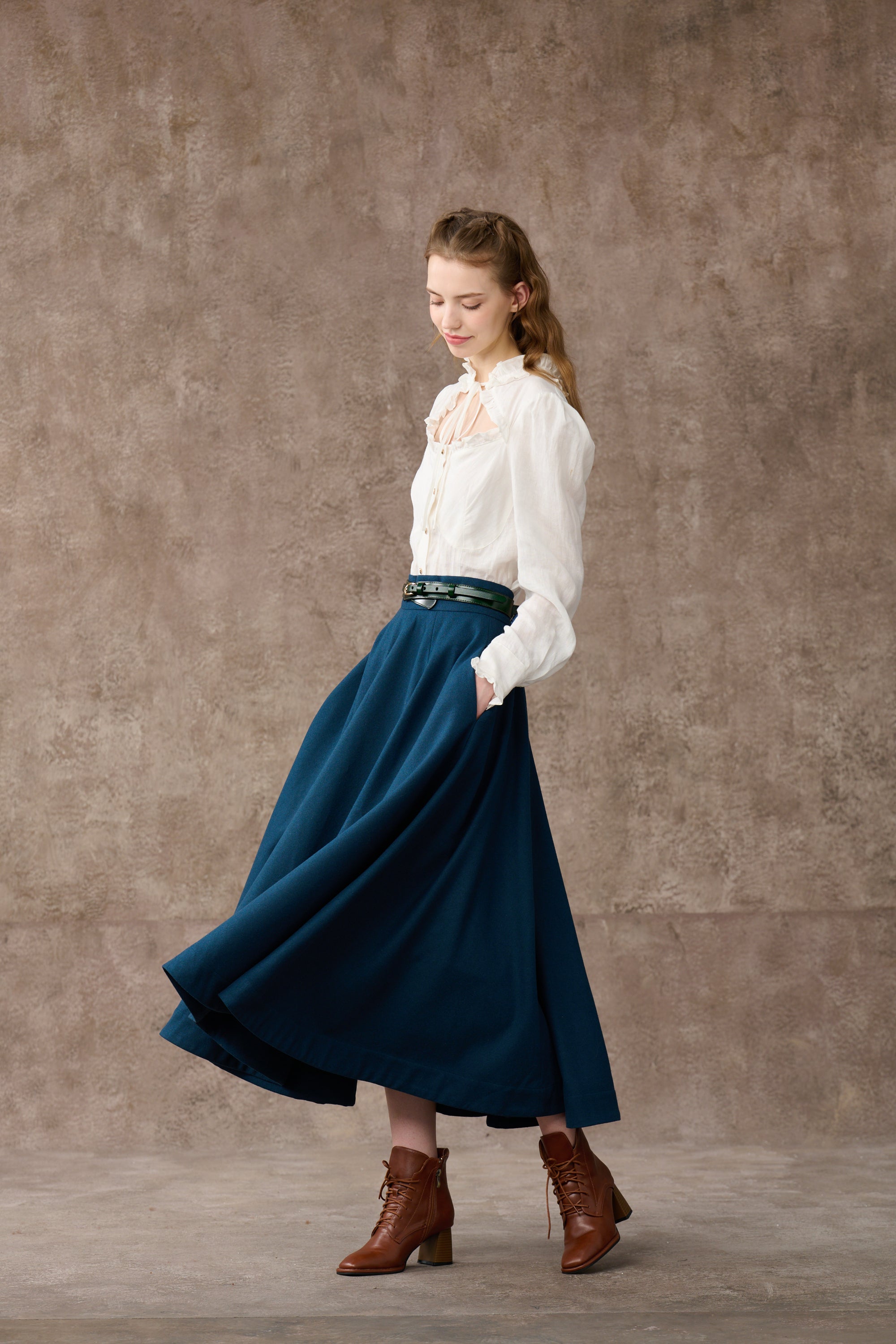 the Great Perhaps 2 | Maxi wool Skirt in Blue
