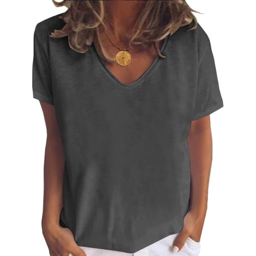 Solid Color V-Neck Half Sleeve Casual T-Shirt