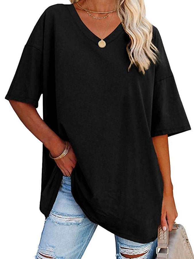 Solid color V-neck short-sleeved plus size women's T-shirt