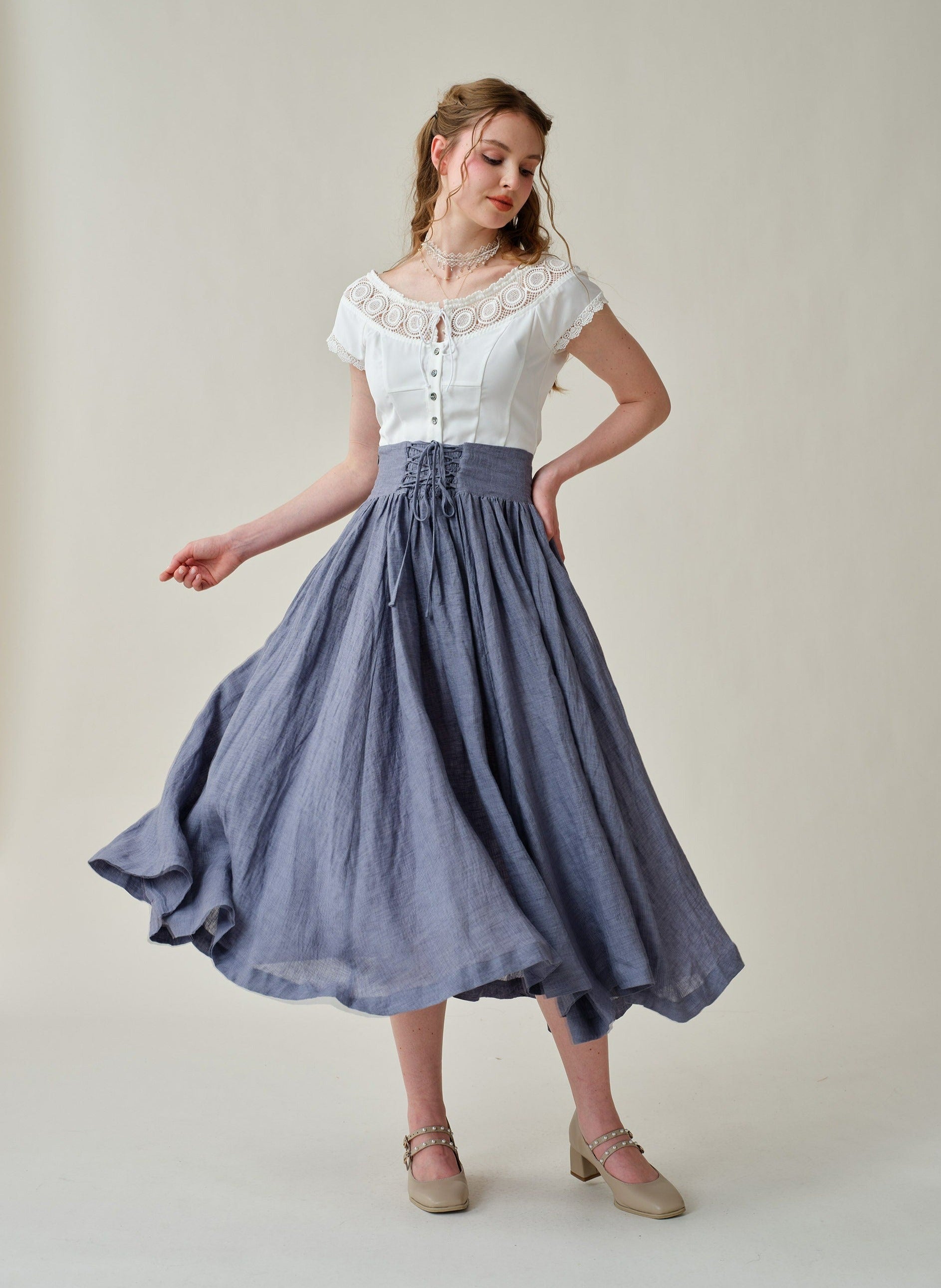 Tea Dance 5 | Lace-up Maxi Linen Skirt