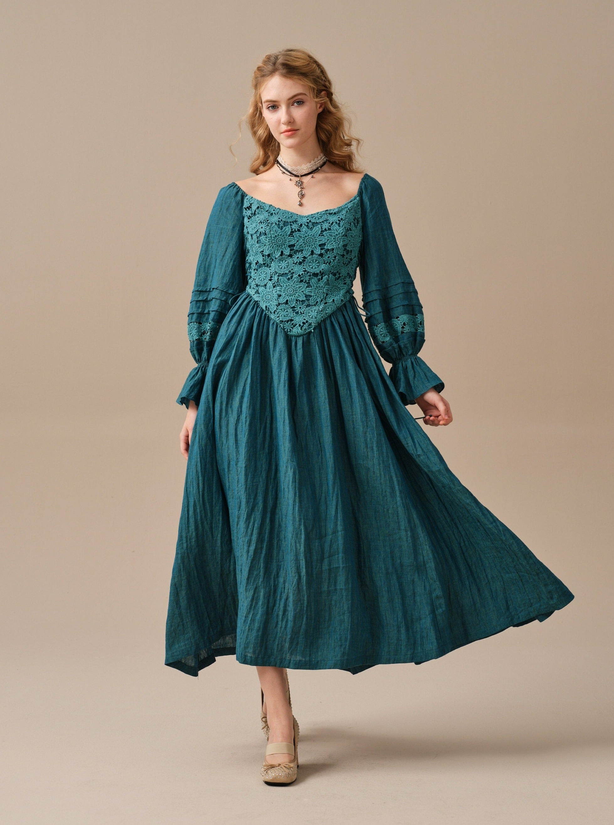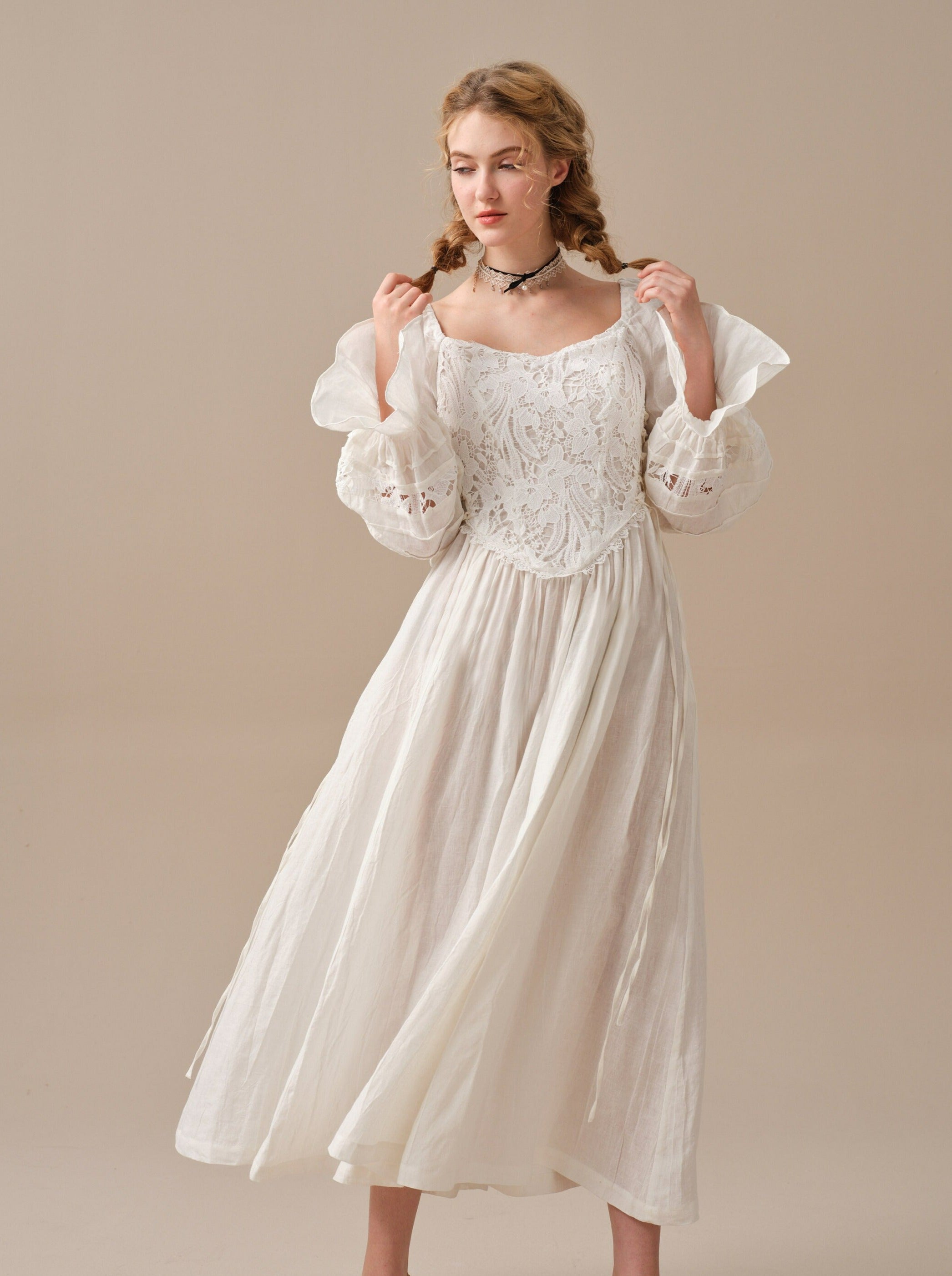 Jesmine 17 | Romantic Linen Dress With French Lace