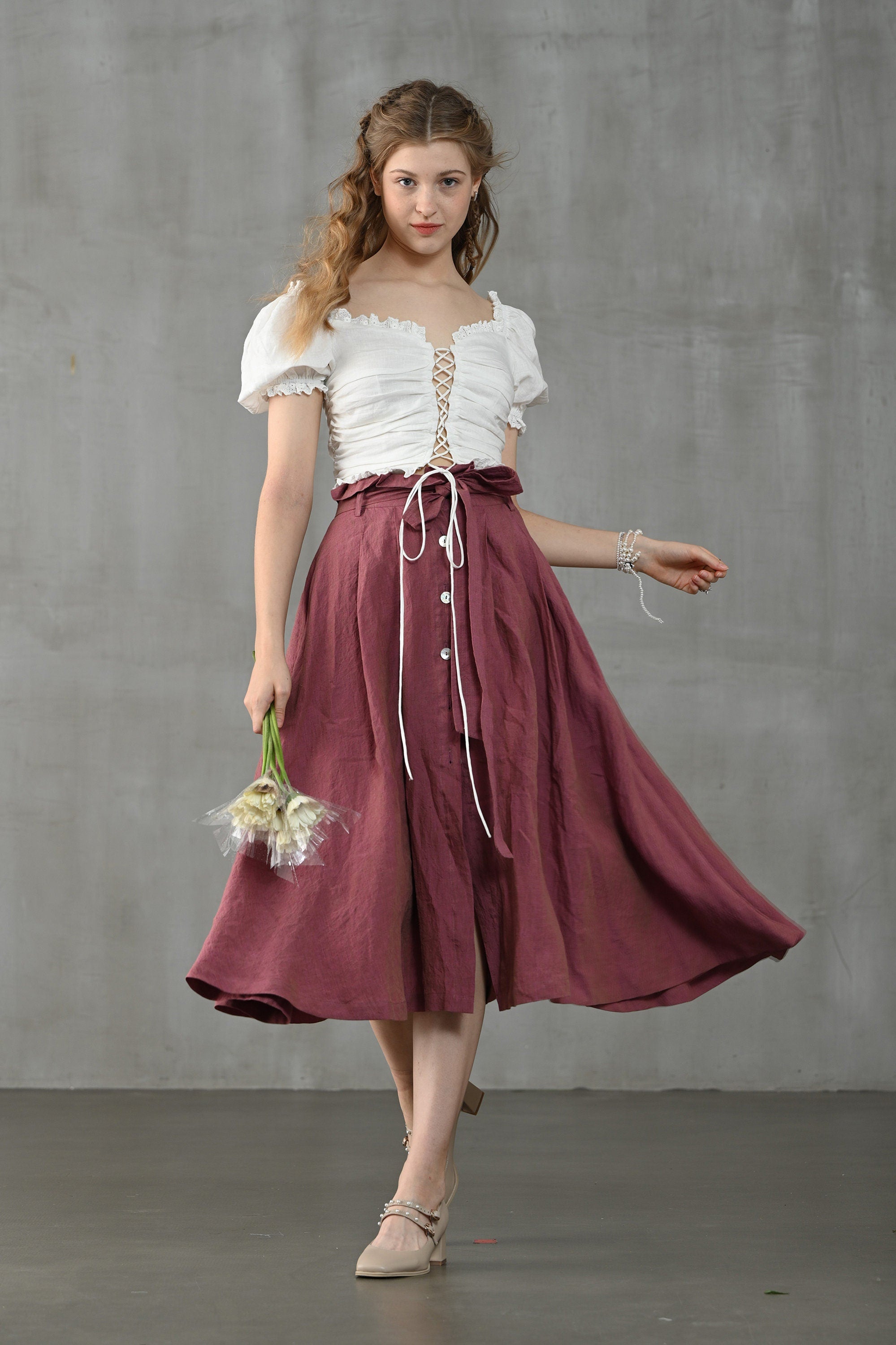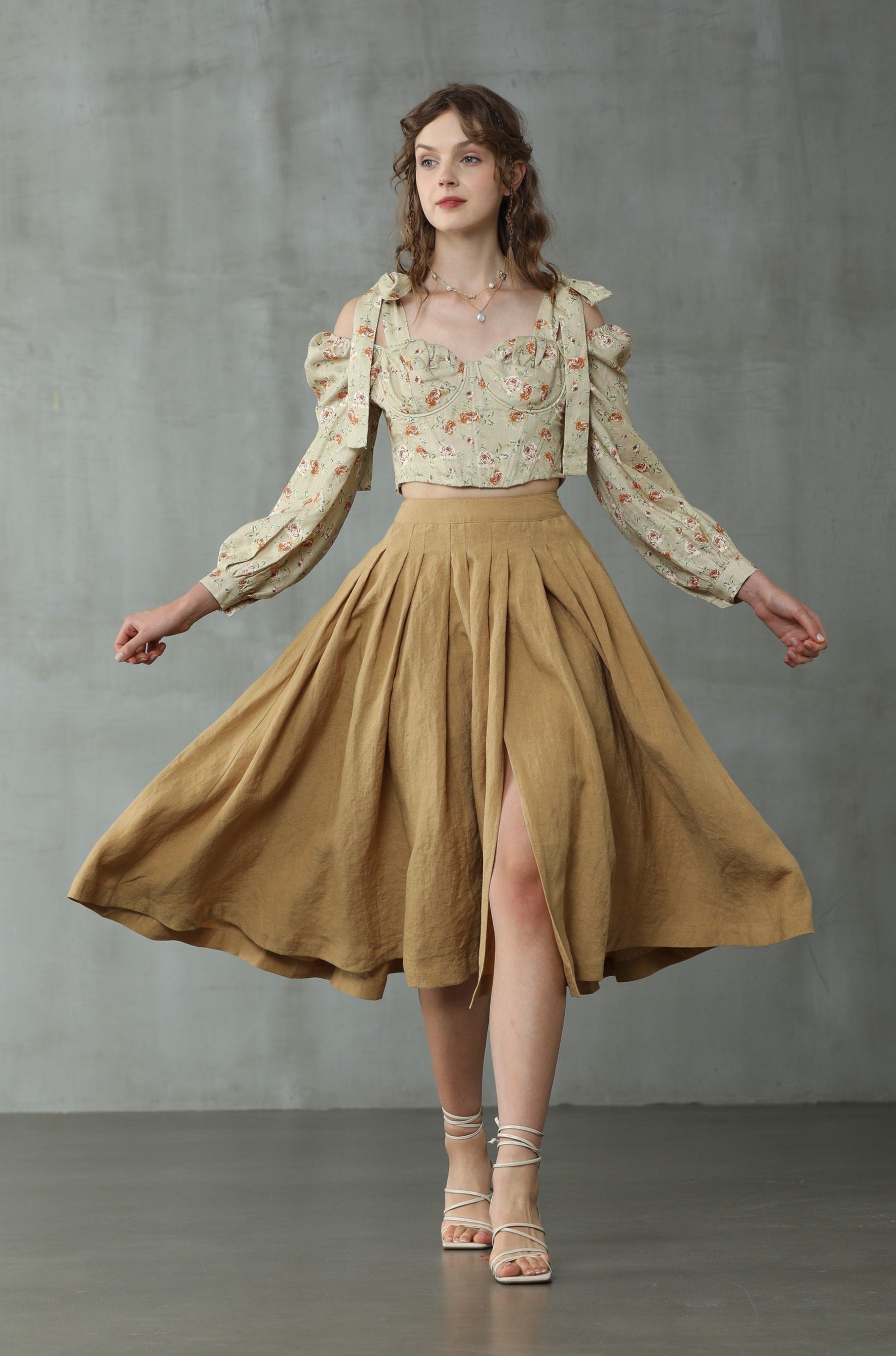 Flower Honey 17 | Front-slit linen skirt