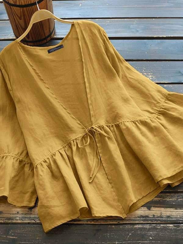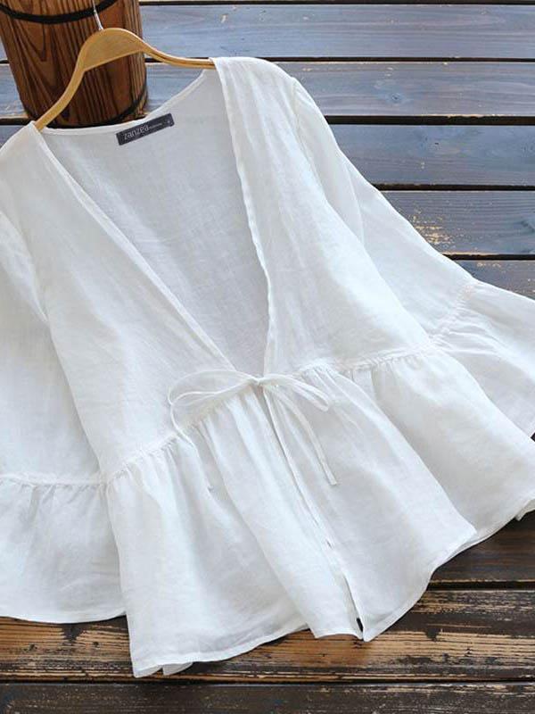 Ladies Casual Cardigan Lantern Sleeve Cotton Linen Top
