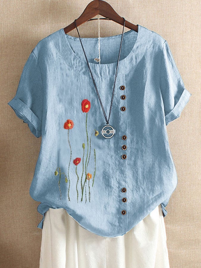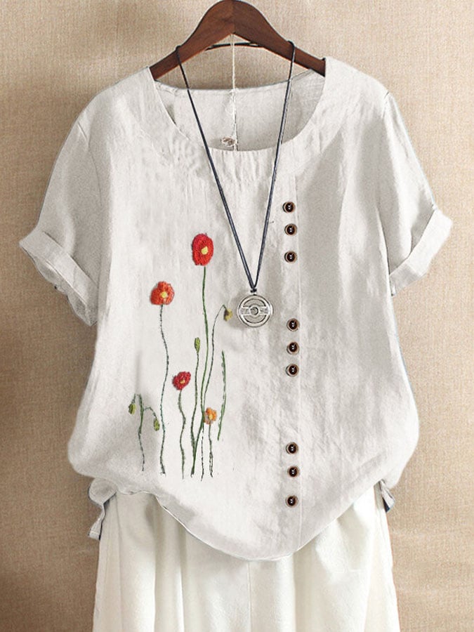 Floral Print Short Sleeve Casual T-Shirt