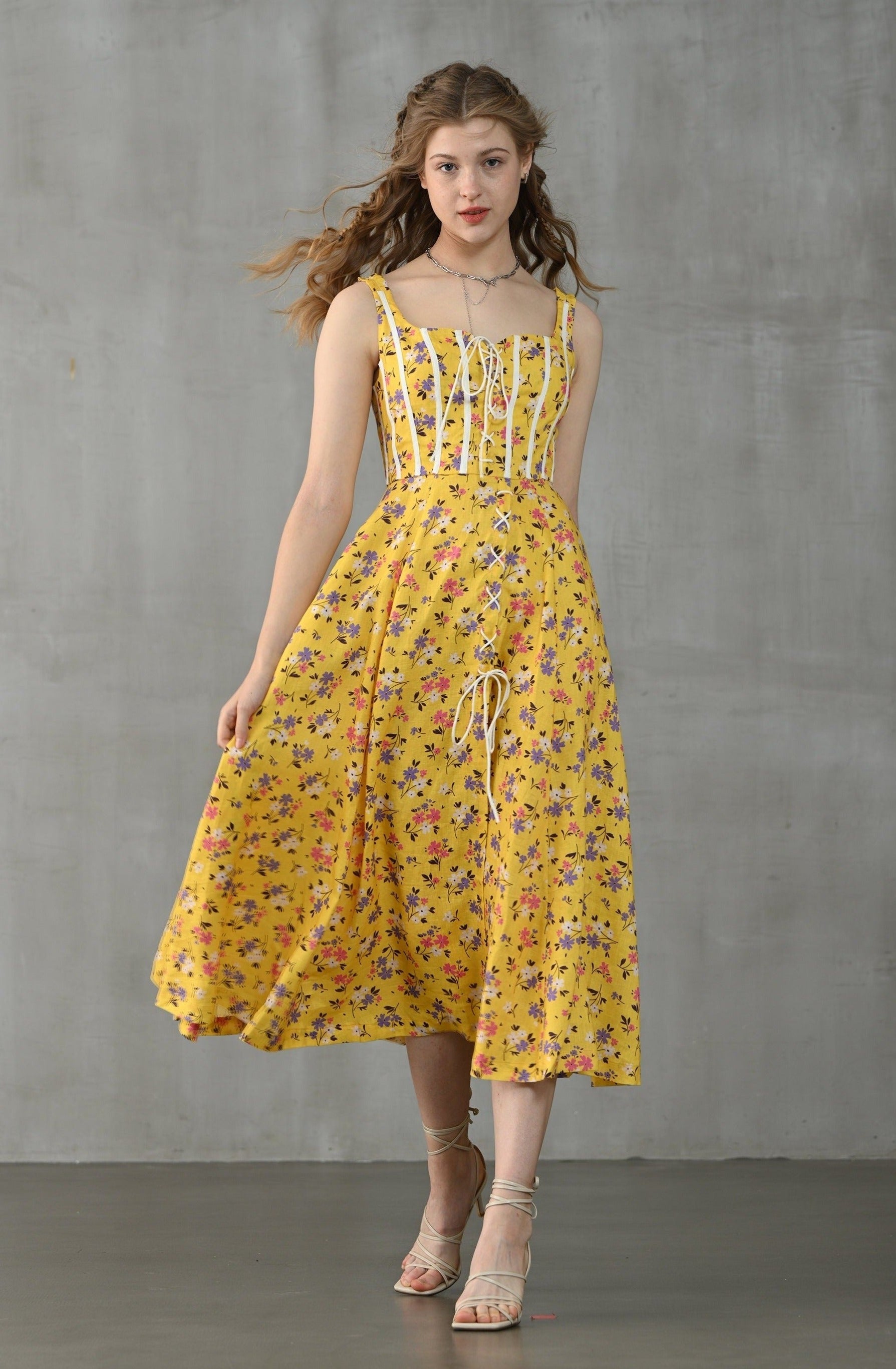 Freesia 21| lace-up floral linen dress