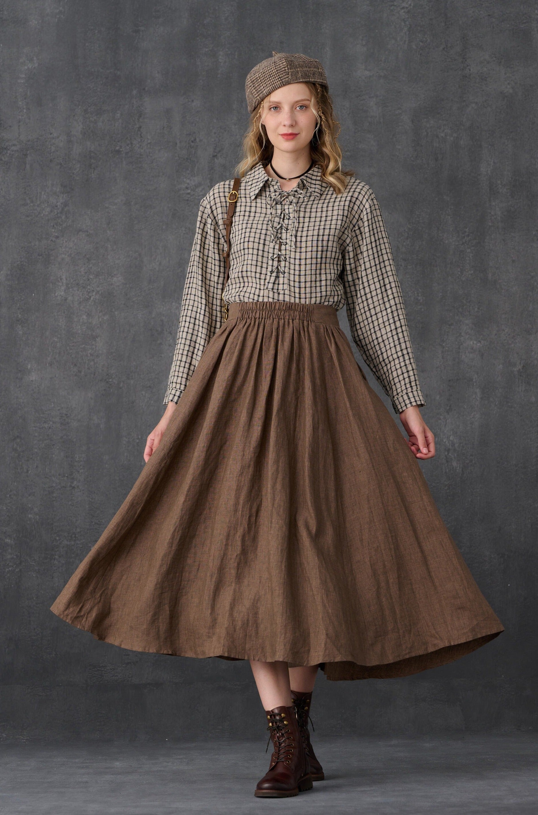 Grace 17 | Plaid 100% Linen Skirt
