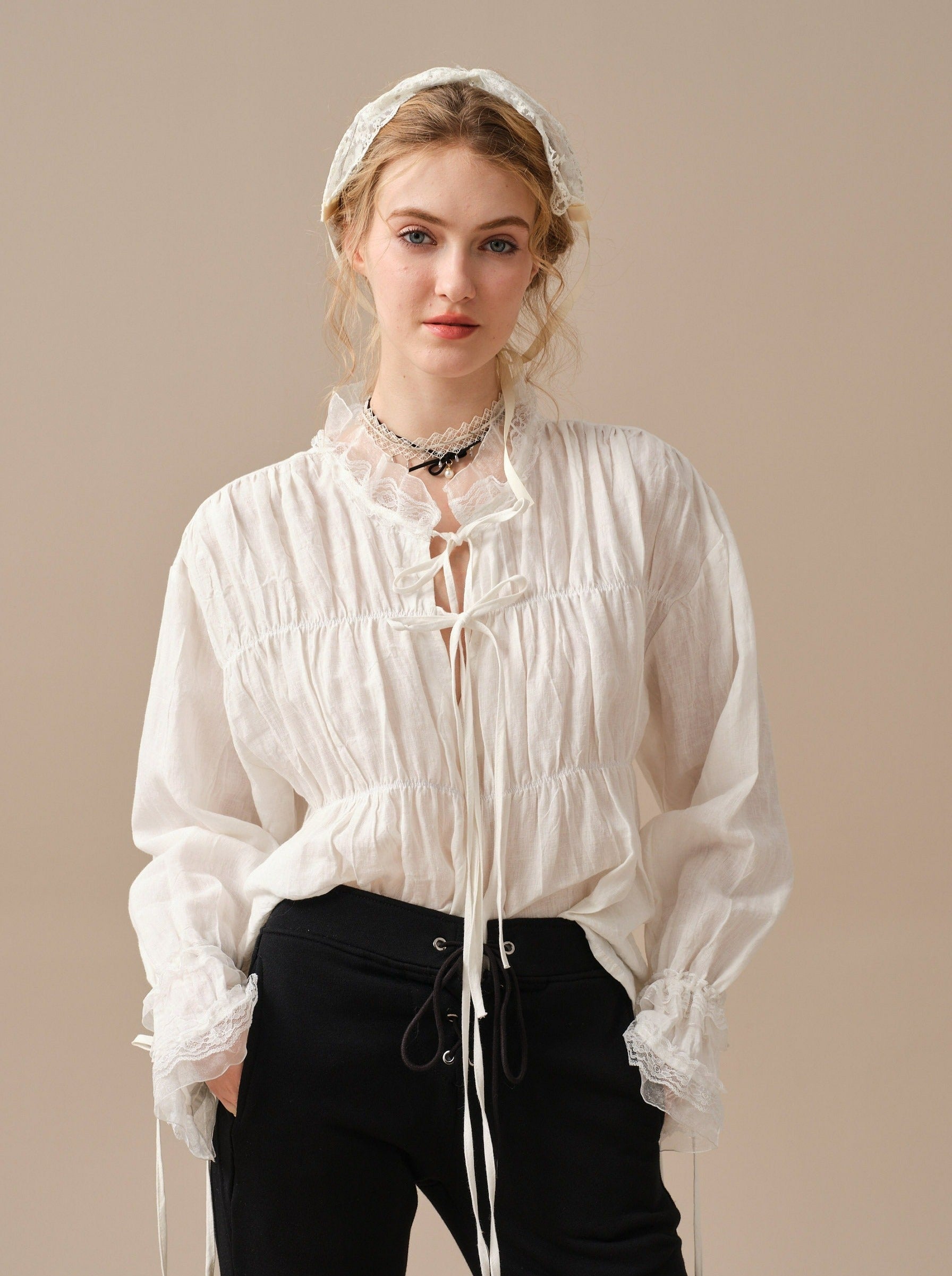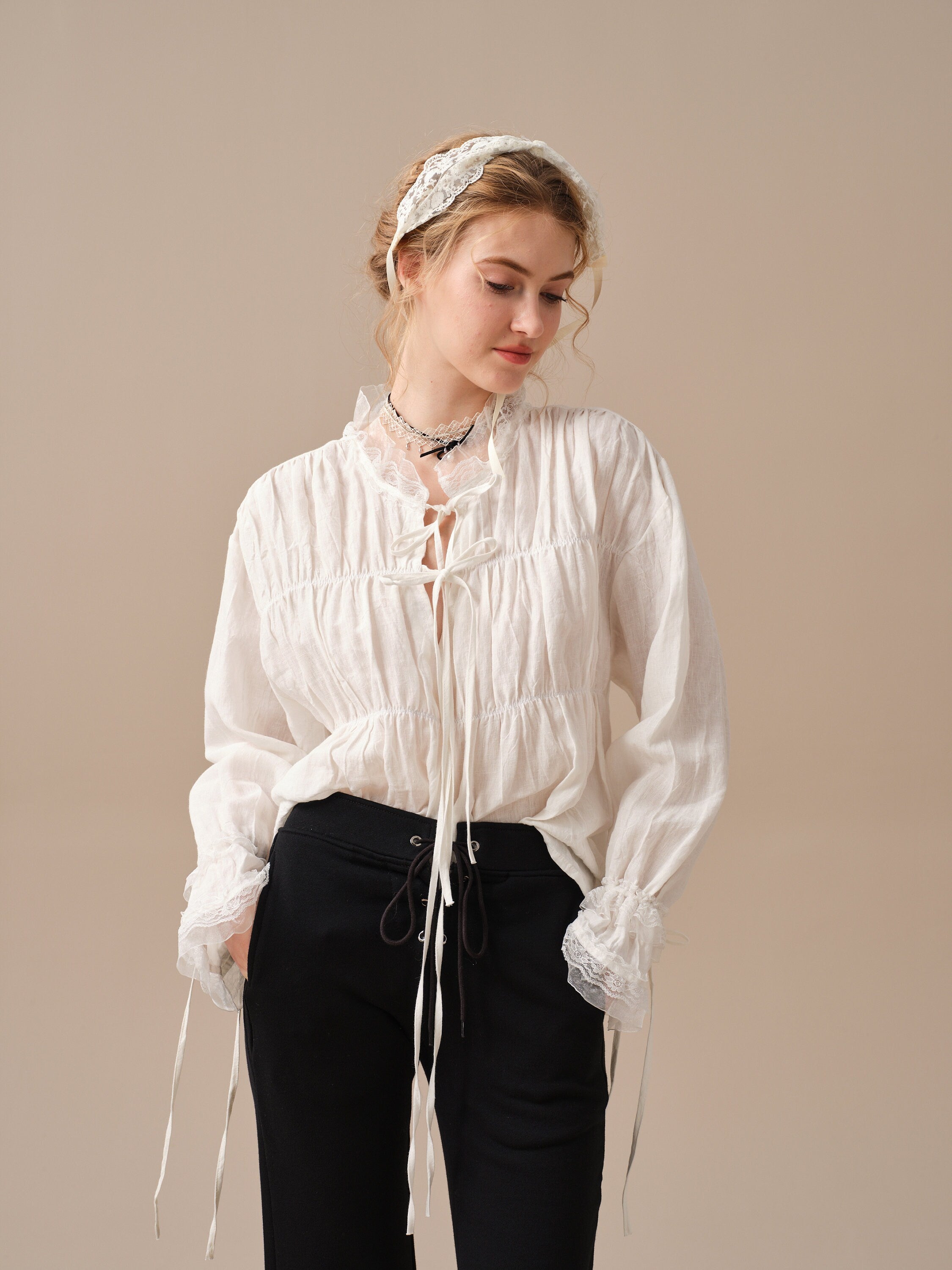 Jasmine 31 | lace-up white linen blouse