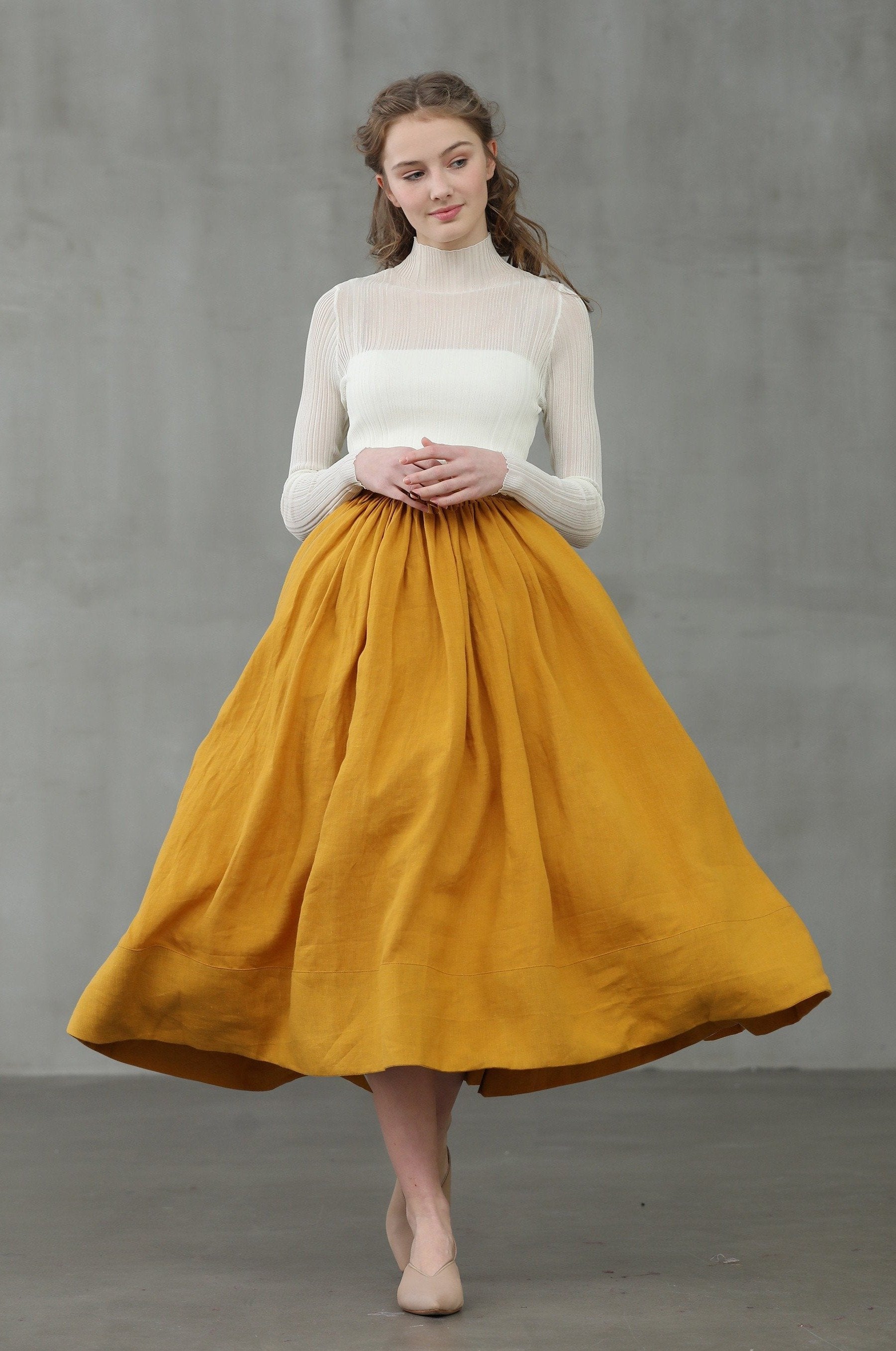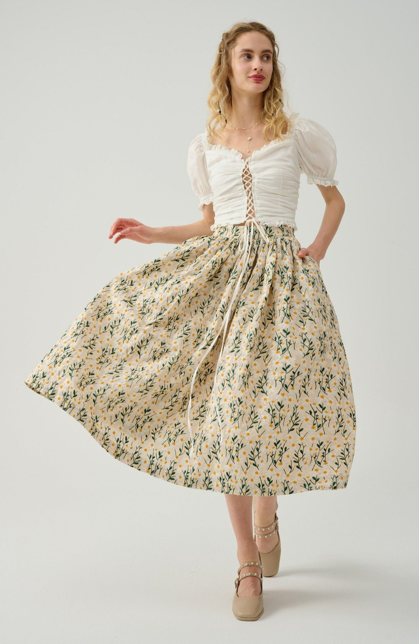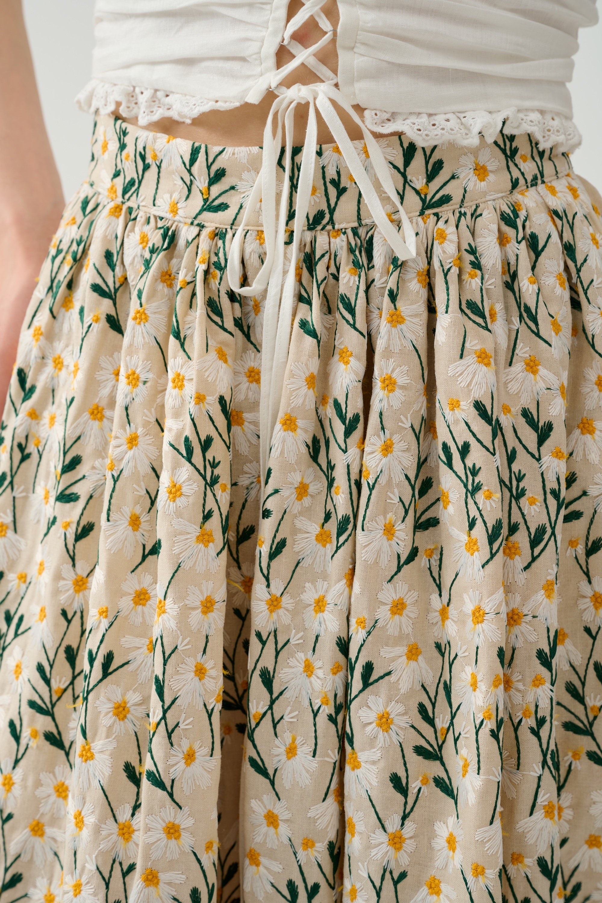 DAISY 03 | F3D Flower Embroidery Linen Skirt