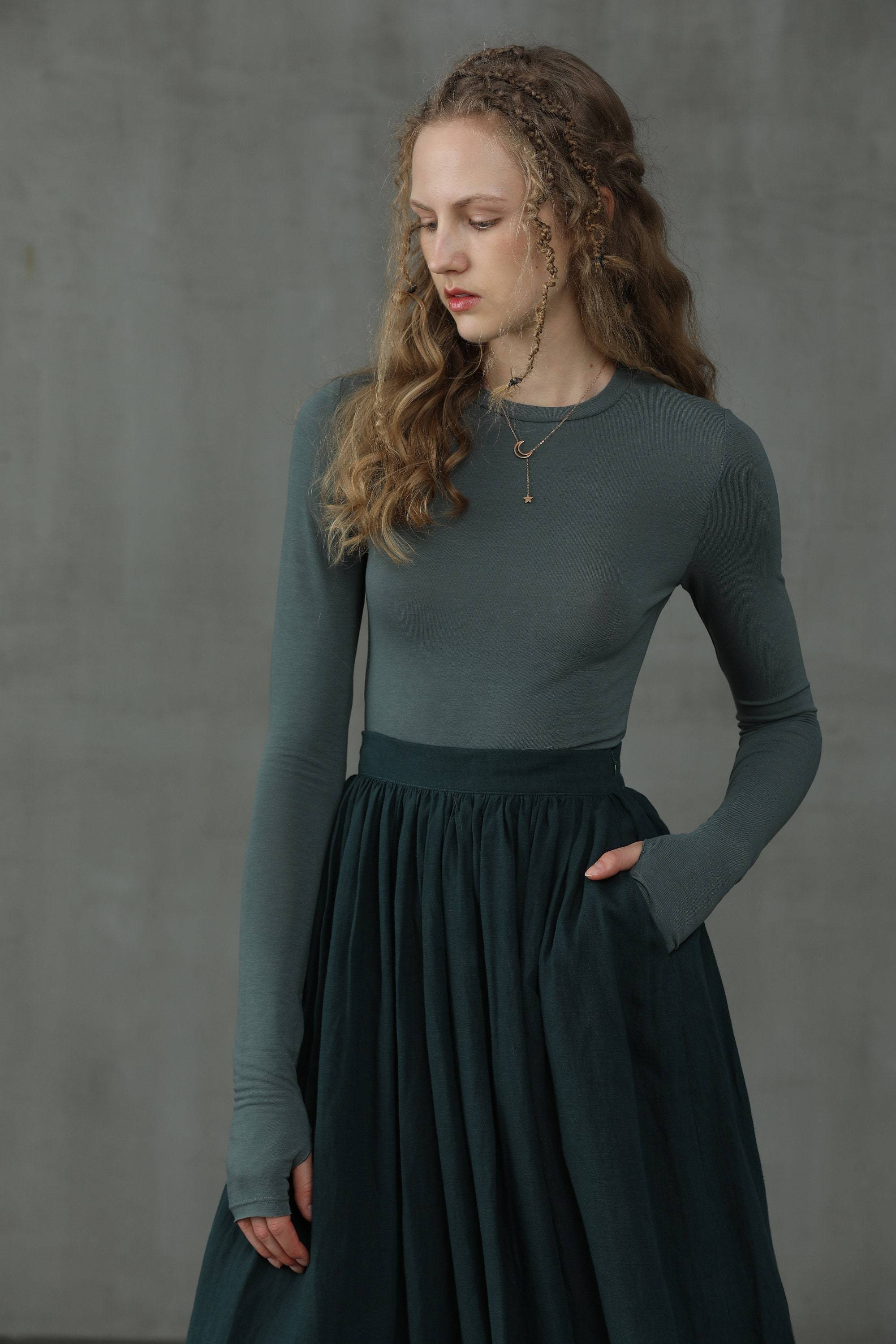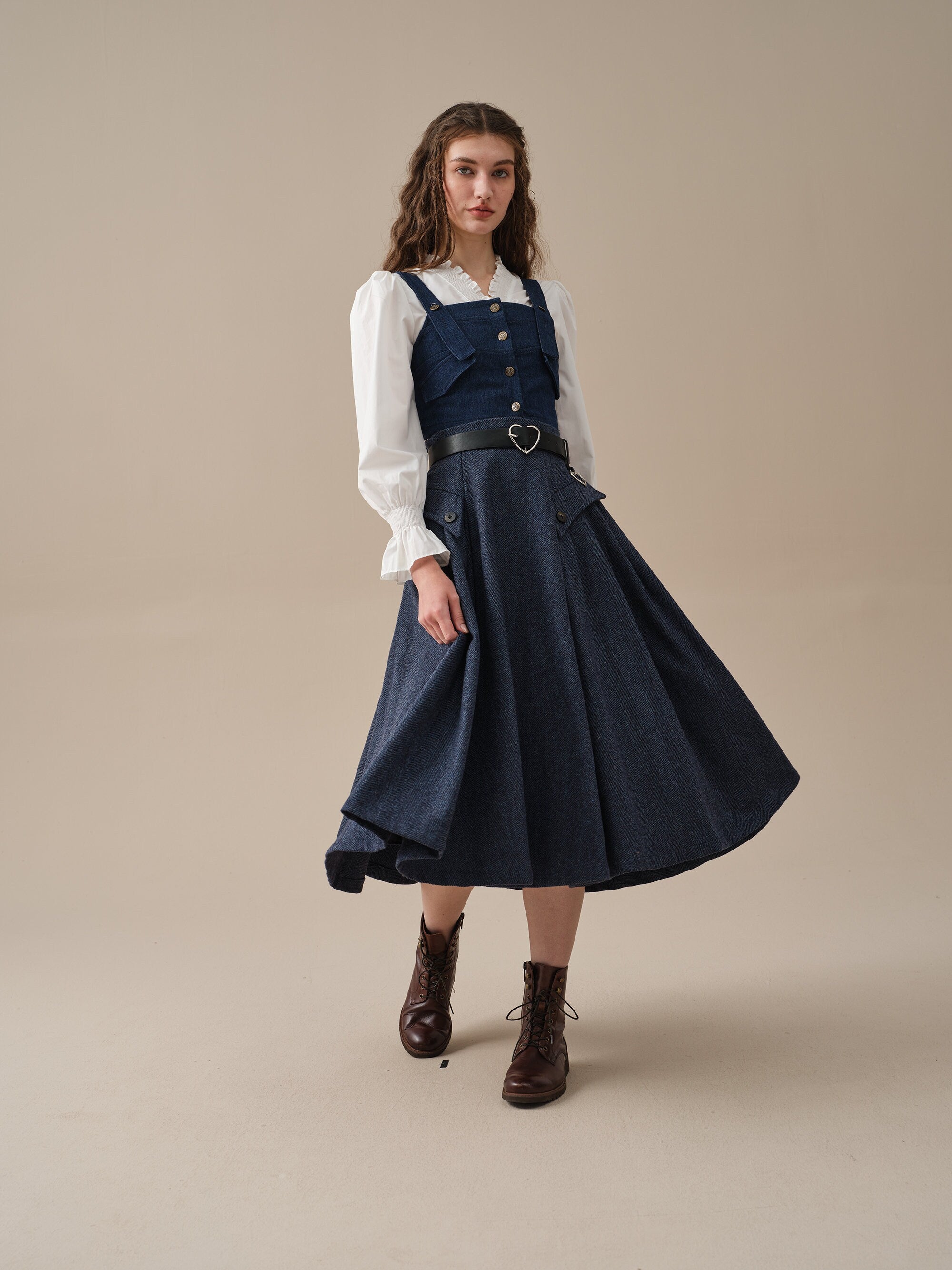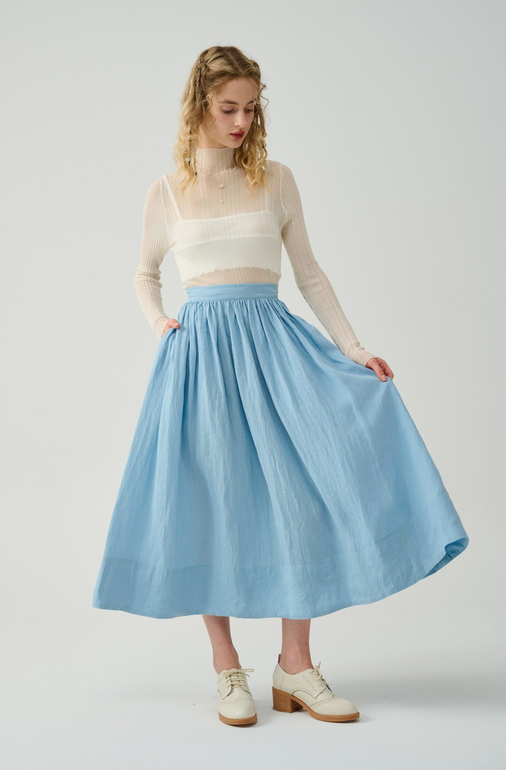DAISY 03 | F3D Flower Embroidery Linen Skirt