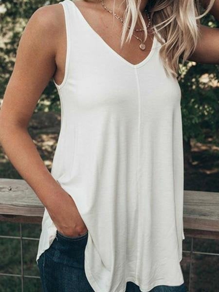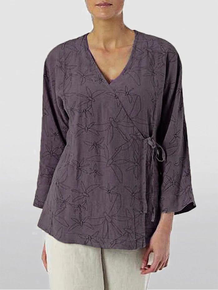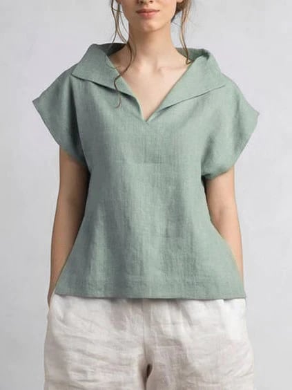 Cotton-Linen V-Neck Solid Color T-Shirt